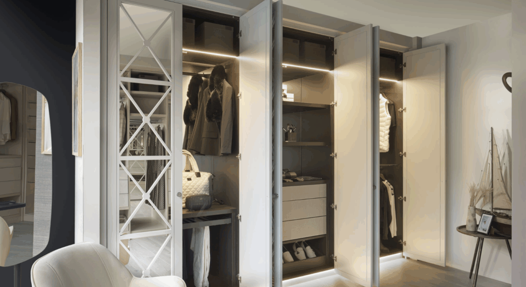 Neatsmith design, manufacture and install London's finest bespoke wardrobes. Your Neatsmith wardrobe will be completely bespoke, with the storage features you require, sophisticated lighting effects and high-quality design features to make sure your unique Neatsmith wardrobe feels special to use every single day.