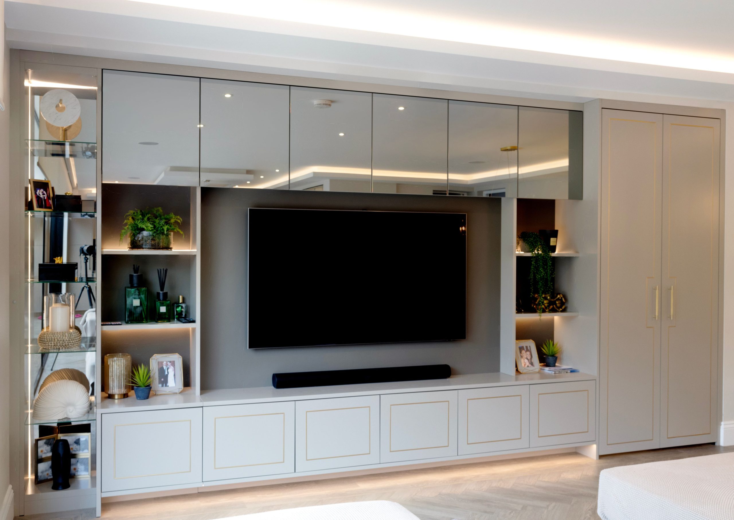 Our skilled team innovatively designed these timeless wardrobes and living spaces to maximise storage and make a bold style statement. With His & Hers dressing rooms to die for, meticulously planned walk-in wardrobe, showstopping study and of course a transformational media wall.